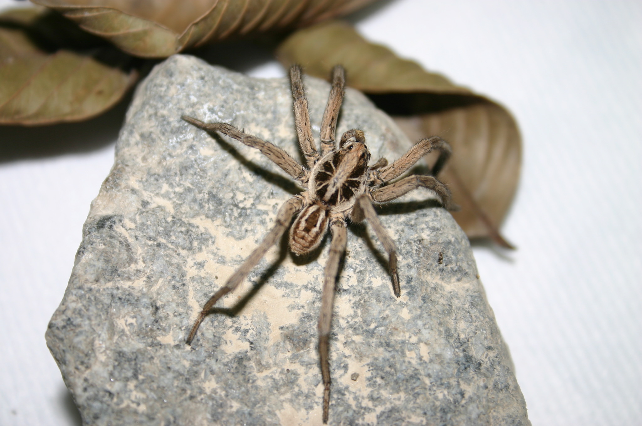 Características: Possuem manchas listradas abaixo das pernas e no cefalotórax apresentam uma listra preta central.