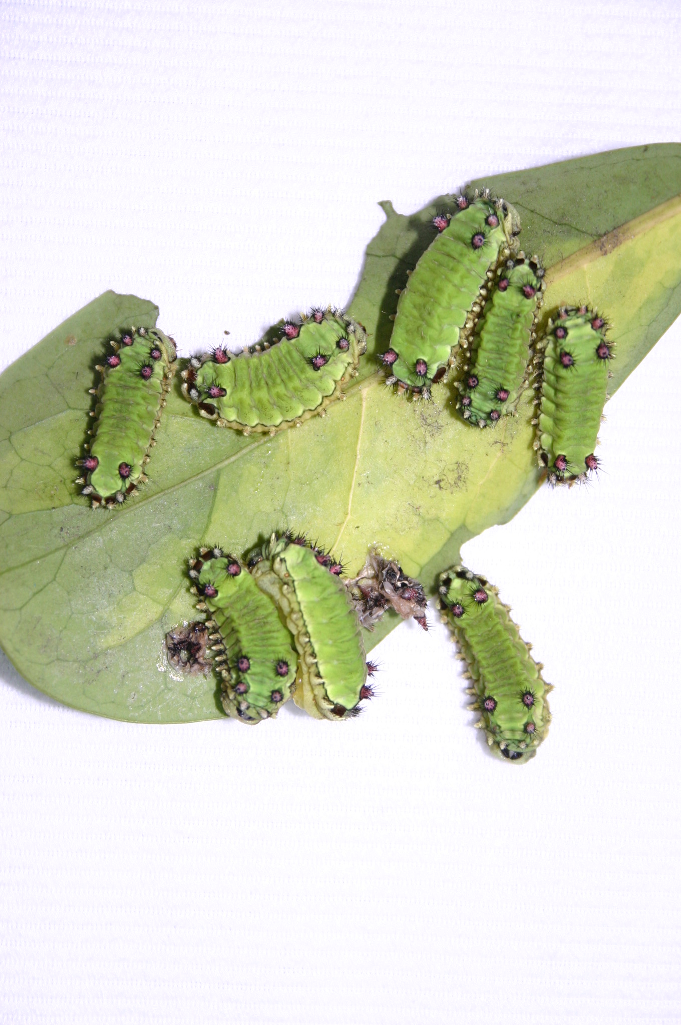 Observações: essa lagarta possui coloração muito chamativa, podendo atrair crianças e animais que podem tentar manuseá-la por curiosidade. Depois da metamorfose, no casulo, chegam a fase adulta e são conhecidas como mariposas olho-de-boi.